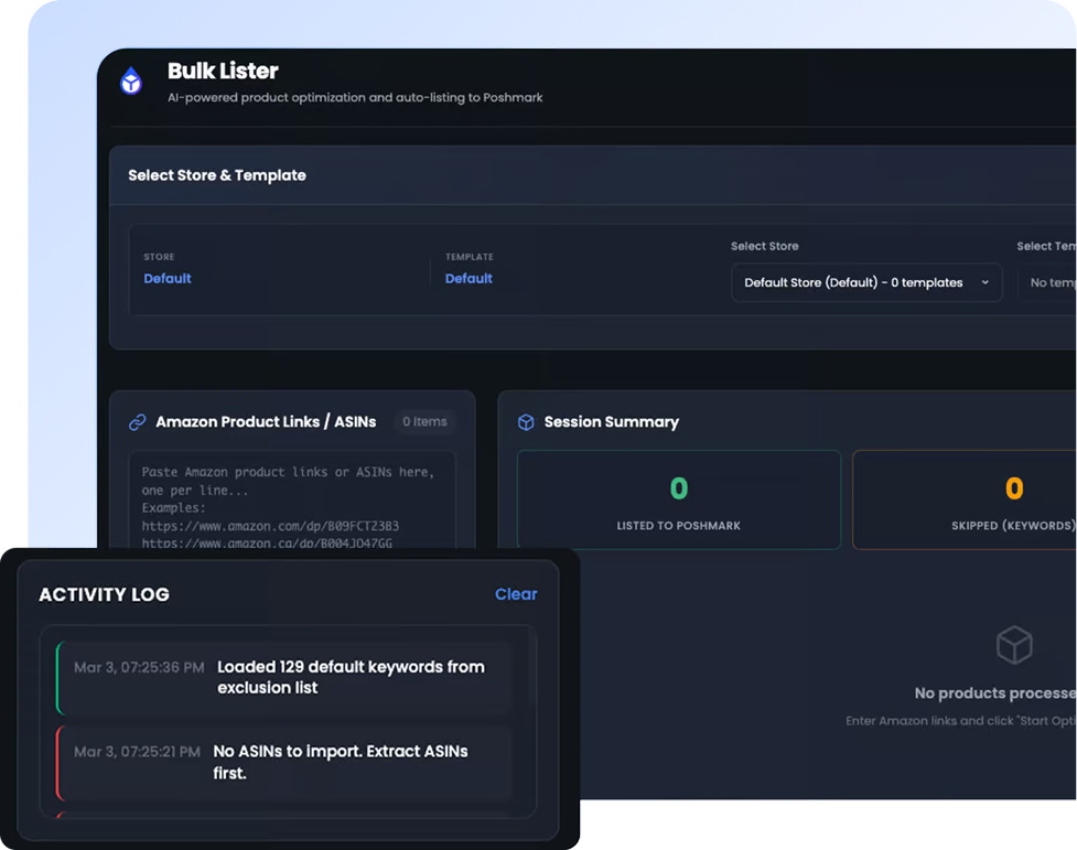 Whether you are just getting started or already handling large numbers of listings, DropFlowLister gives you the systems, automation, and flexibility needed to scale your eBay and Poshmark dropshipping business with more speed and less stress.